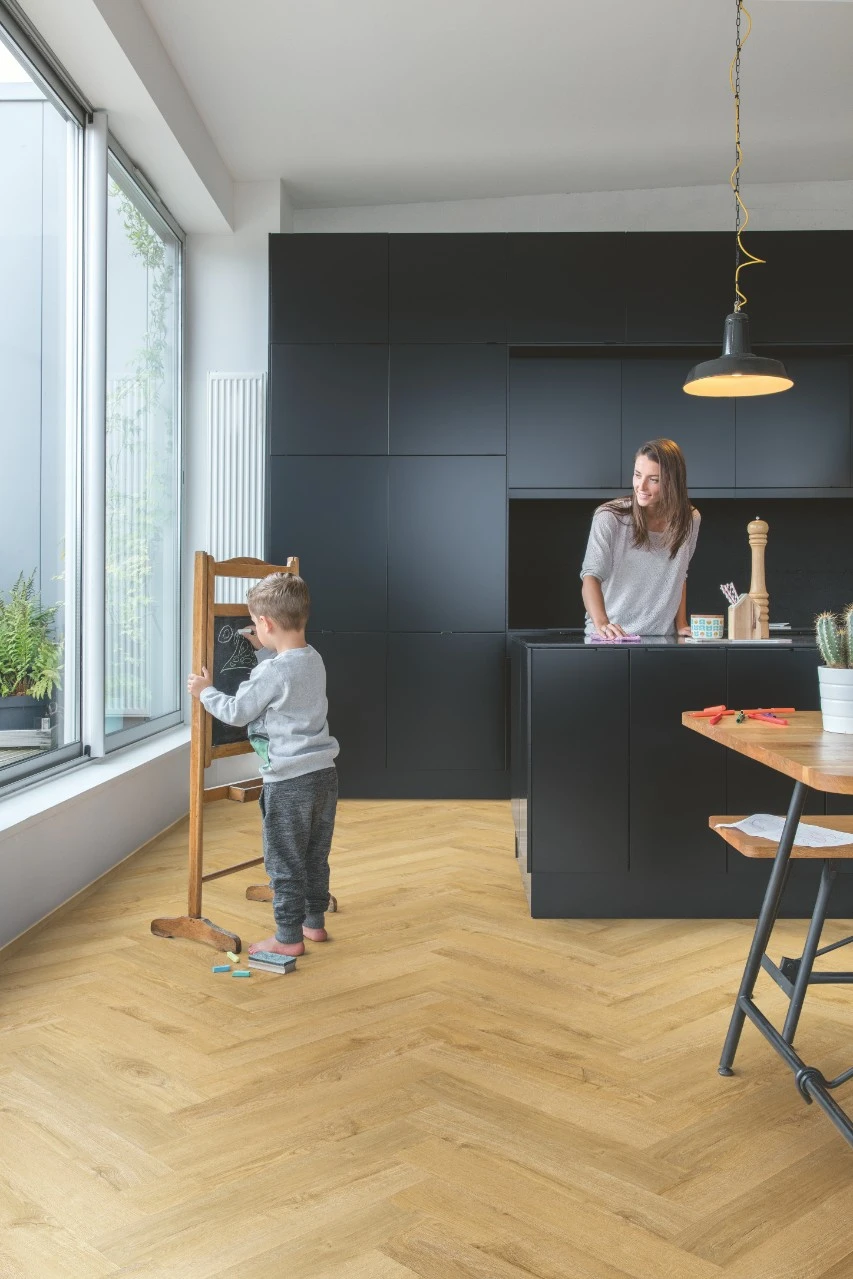 Колекція клейового вінілу Quick-Step Pristine Herringbone 33кл 2,5мм (SGHBC) є новаторським рішенням, створеним з використанням передових технологій. Цей вініл відрізняється високими показниками зносостійкості та вологостійкості, що робить його ідеальним вибором для будь-якого приміщення. Привабливий стиль колекції у поєднанні з практичністю та чудовими характеристиками робить її універсальним рішенням для сучасного інтер'єру. Прекрасний зовнішній вигляд і тактильне відчуття натуральної деревини з приголомшливою деталізацією візерунка англійської ялинки надасть вашому простору особливого шарму та елегантності.